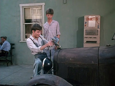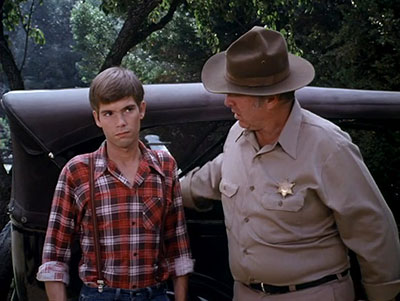 In town at the sheriff’s office, Ep Bridges talks with a man about locating a runway named Joe Douglas. Jim-Bob comes out of a store and sees the boy in question examining his car. Jim-Bob says that he built the car himself. Joe suddenly sees the man who is looking for him and asks Jim-Bob for a ride and they take off. They have to stop so the engine can cool down. They talk about strawberry donuts and motorcycle riding all over the place. Jim-Bob reveals that he had a twin brother named Joe who died when he was born. Jim-Bob invites Joe to dinner at his house.