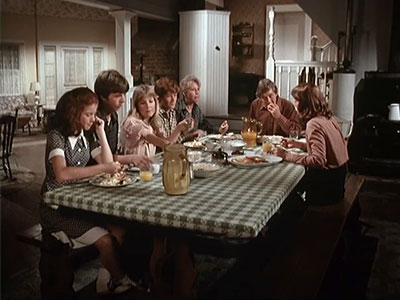 The family eats breakfast and discusses their plans for the day. John is off to Camp Lee and Olivia and Mary Ellen plan to head up the mountain
