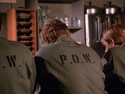 John pulls the truck over when the rad begins to overheat. He asks Harley to get some more coffee at the cafe they stop beside. Inside the cook won’t serve him and even the local police officer reveals his hatred and racist attitude calling Harley a “boy”. The officer is over seeing a group of POW workers who are eating their lunch before heading back to a work camp. John comes in and quickly questions the behavior of the two men. When he sees that he can’t reason with them he says to Harley that they need to leave that “cesspool”. The officer remembers where he saw Harley before and he writes down John’s license plate number as they leave.