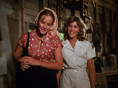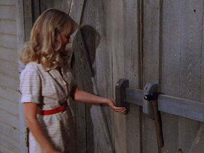 Drew arrives at the Walton’s on his bike. He has been working at a soda shop and trying to save for a car. He finds Cindy at the barn who is busy trying to repair the lock on the door so that Chance can get free. He offers to help but she snaps back that she doesn’t need any help but then apologizes and explains that no one around there is letting her do anything but change diapers and curl her hair. Drew finds Elizabeth tending to her horses and asks if they are still going steady. They talk out their differences and then make a date to have a picnic.