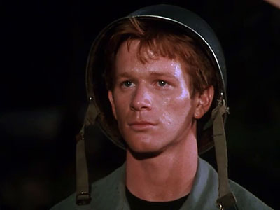 Ben gets in trouble from his CO when he fails to wear his helmet and keep his gun by his side while building a structure for the army.
