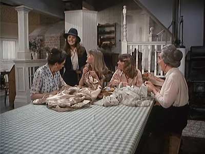 The Baldwin sisters decide to have a class reunion/celebration of life/fancy dress ball. They engage the Walton’s to help prepare. Each of the siblings turn on each other in an attempt to not be committed to a task but in the end they all end up helping. Elizabeth makes doily invitations, Mary Ellen makes Olivia’s Apple Sauce Cake, Ben and Jim-Bob fix the Recipe Machine and agree to park the cars and limos of the guests. Ike and Corabeth discover that most of the Baldwin’s party invitations have been returned due to address unknown or deceased notification.